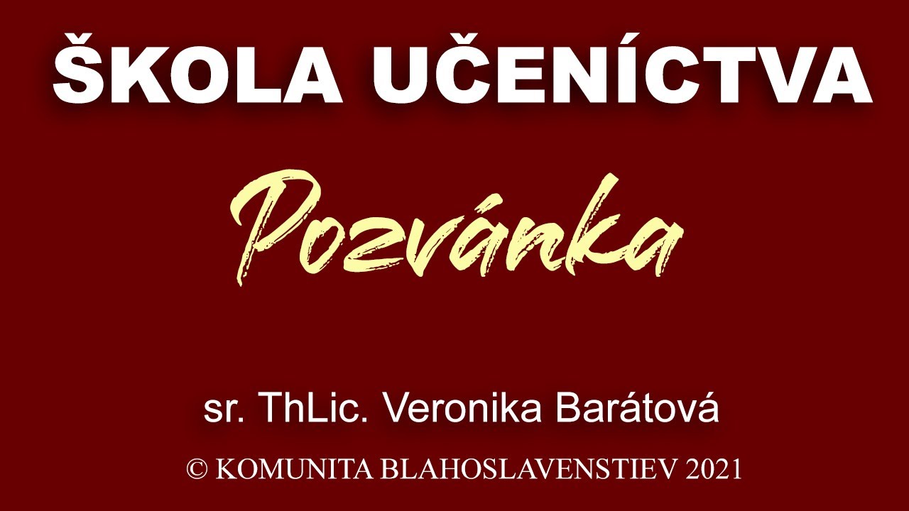 Online cyklus školy učeníctva prostredníctvom nášho youtube kanála, určený všetkým kresťanom,ktorí chcú byť učeníkmi Ježiša Krista – teda žiť svoju vieru ako vzťah s Ježišom založený na jeho slove, učiť sa vnímať Boha, seba, druhých a svet s jeho problémami a výzvami jeho očami, a tak mu byť svedkami vo svete okolo nás. Ide o cyklus 25 tzv. základných prednášok a 5 doplnkových (dĺžka 30-45 min).